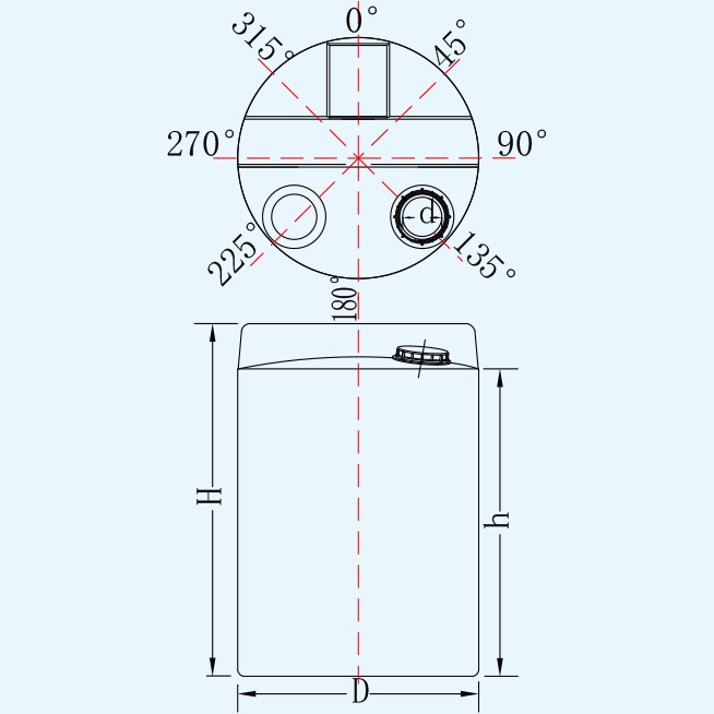 | 名稱 | 型號 | 容量L | 人孔d | 直徑D | 垂高h | 總高H | 平均厚度mm |