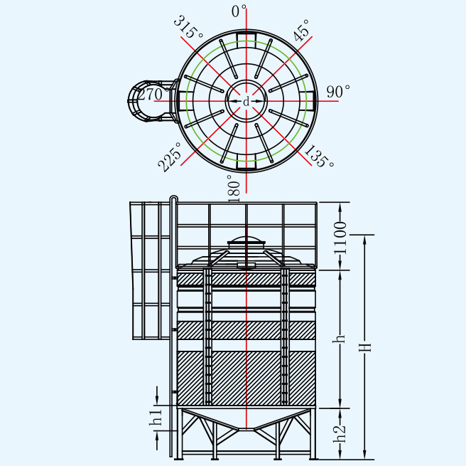 | 名稱 | 型號 | 容量L | 桶體直徑D | 人孔直徑d | 含腳總高H | 垂高h | 錐高h2 | 腳高h1 | 平均厚度mm |