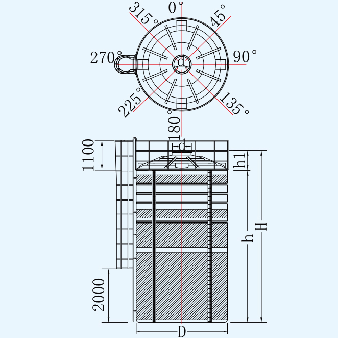 | 名稱 | 型 號(hào) | 容量L | 桶體D | 人孔d | 垂高h(yuǎn) | 總高H |