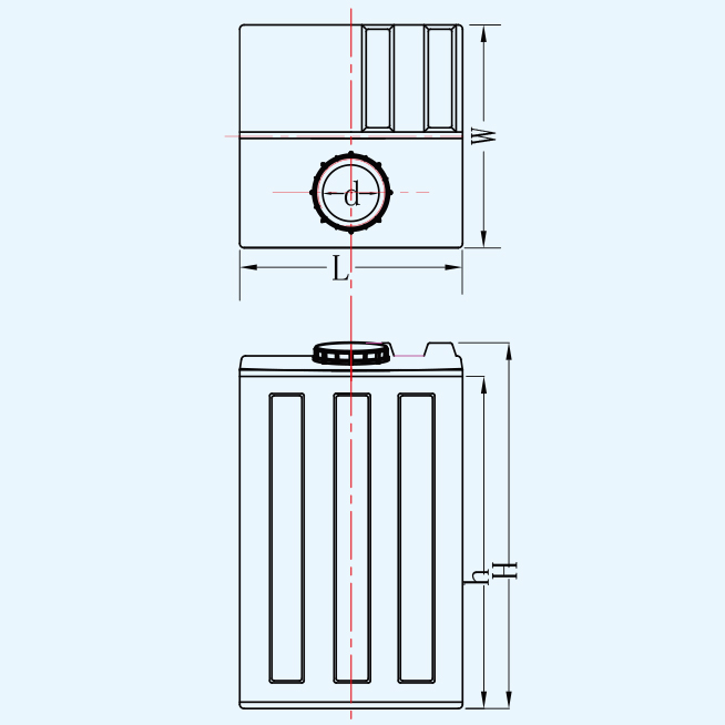 | 名稱 | 型號(hào) | 容量L | 人孔d | 長(zhǎng)L | 寬W | 垂高h(yuǎn) | 總高H | 平均厚度mm |