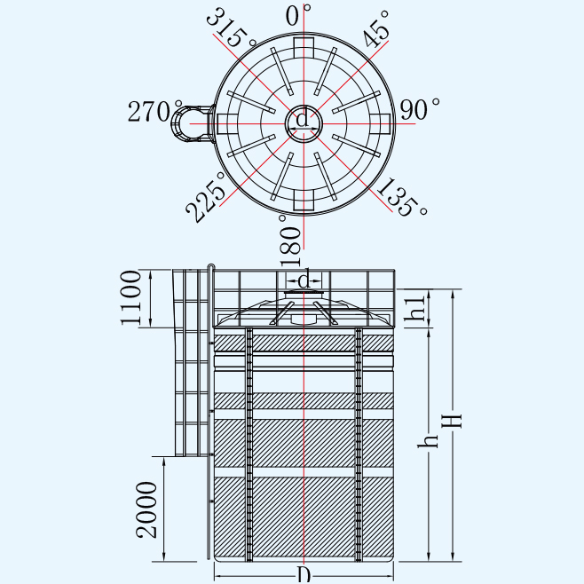 | 名稱 | 型 號(hào) | 容量L | 桶體D | 人孔d | 垂高h(yuǎn) | 總高H |
