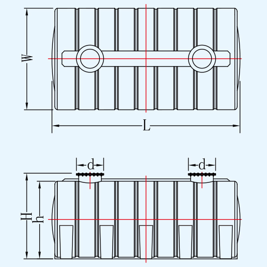 -材質(zhì)與工藝:臥式PE酸堿儲罐采用聚乙烯(PE)材質(zhì),通過滾塑一體成型技術(shù)制造,具有良好的耐酸堿性和耐腐蝕性。