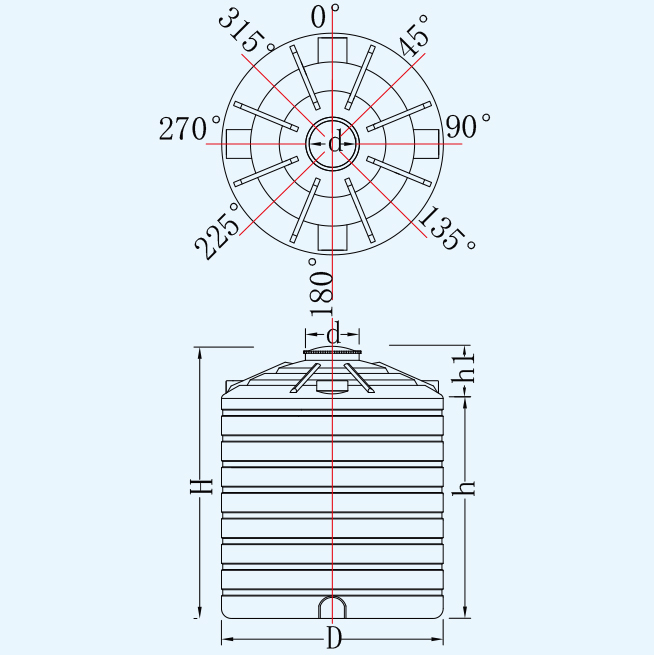 | 名稱 | 型 號(hào) | 容量L | 桶體D | 人孔d | 垂高h(yuǎn) | 總高H |