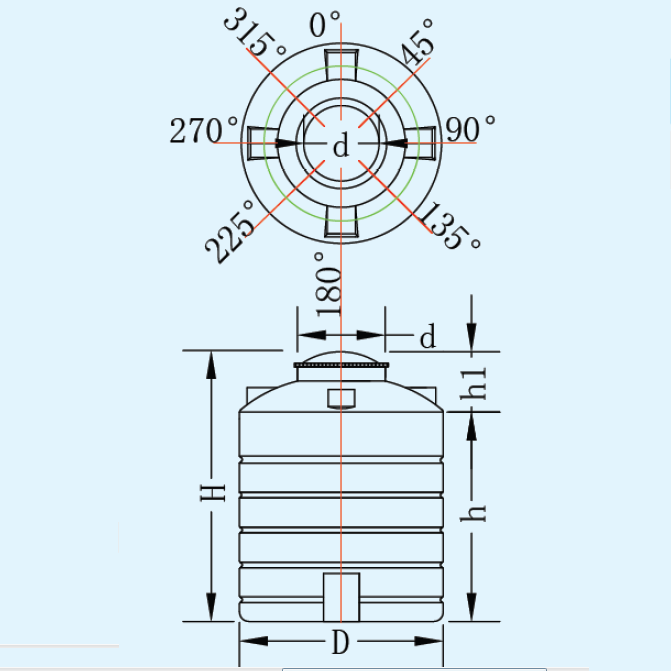 | 名稱 | 型 號(hào) | 容量L | 桶體直徑D | 人孔直徑d | 垂高h(yuǎn) | 總高H |