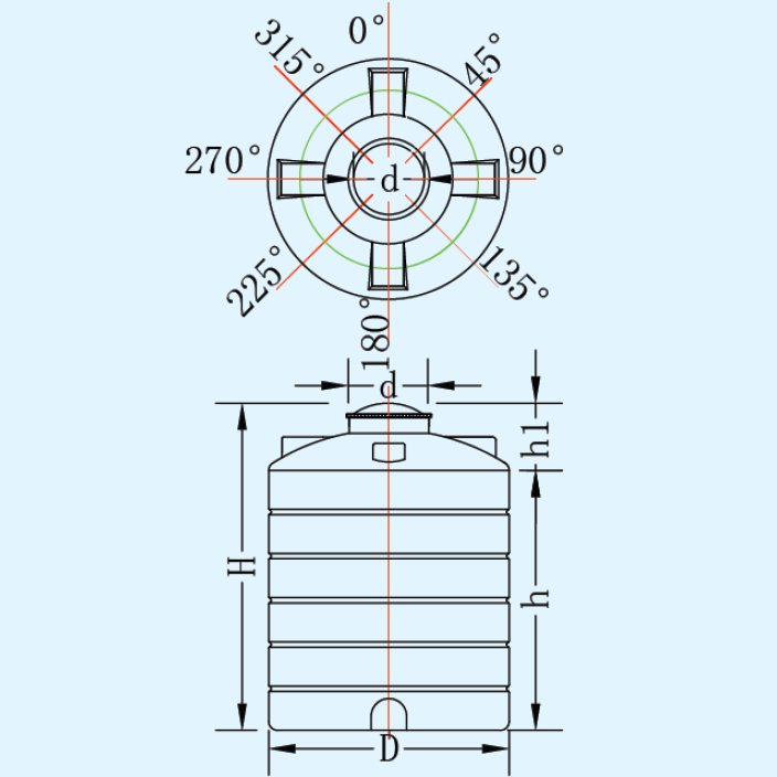 | 名稱 | 型 號 | 容量L | 桶體直徑D | 人孔d | 垂高h | 總高H |