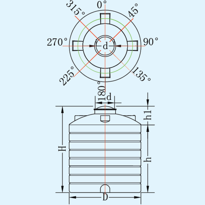 | 名稱 | 型 號 | 容量L | 桶體D | 人孔d | 垂高h | 總高H |