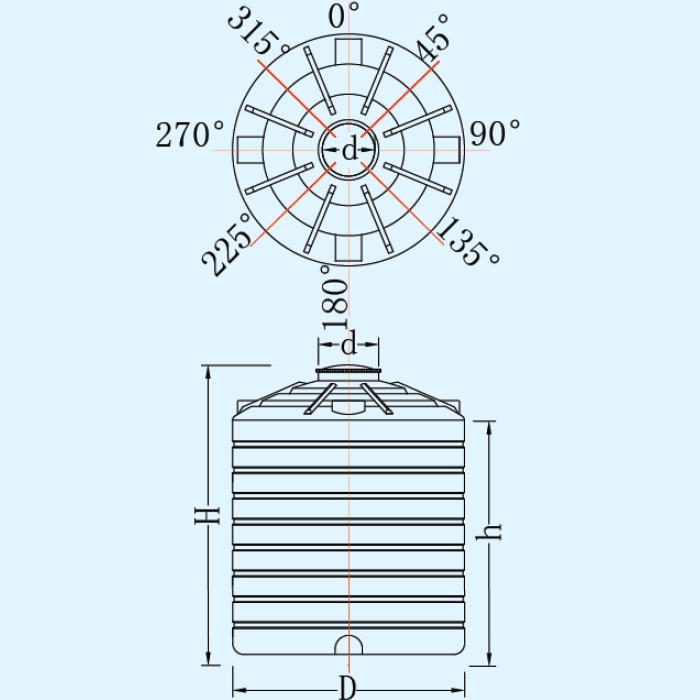 | 名稱 | 型 號 | 容量L | 桶體D | 人孔d | 垂高h | 總高H |