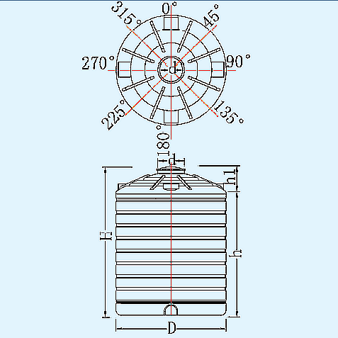 | 名稱 | 型 號(hào) | 容量L | 桶體D | 人孔d | 垂高h(yuǎn) | 總高H |