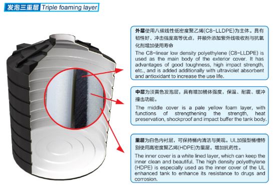 海強(qiáng)集團(tuán)的PE儲(chǔ)罐有哪些不可替代的優(yōu)勢?據(jù)相關(guān)負(fù)責(zé)人透露,公司產(chǎn)品采用發(fā)泡三層先進(jìn)的滾塑制作工藝進(jìn)行生產(chǎn),其產(chǎn)品優(yōu)點(diǎn):質(zhì)輕堅(jiān)韌、不易破裂、搬運(yùn)簡便、耐震、耐沖擊、耐熱、耐凍攝氏70℃~-30℃均可使用。質(zhì)量穩(wěn)定、不易老化(已添加抗老化劑和紫外線吸收劑可有效延長產(chǎn)品的老化期)一體成型無焊接處不易滲漏,對(duì)各類酸堿具有極佳之抗蝕性。